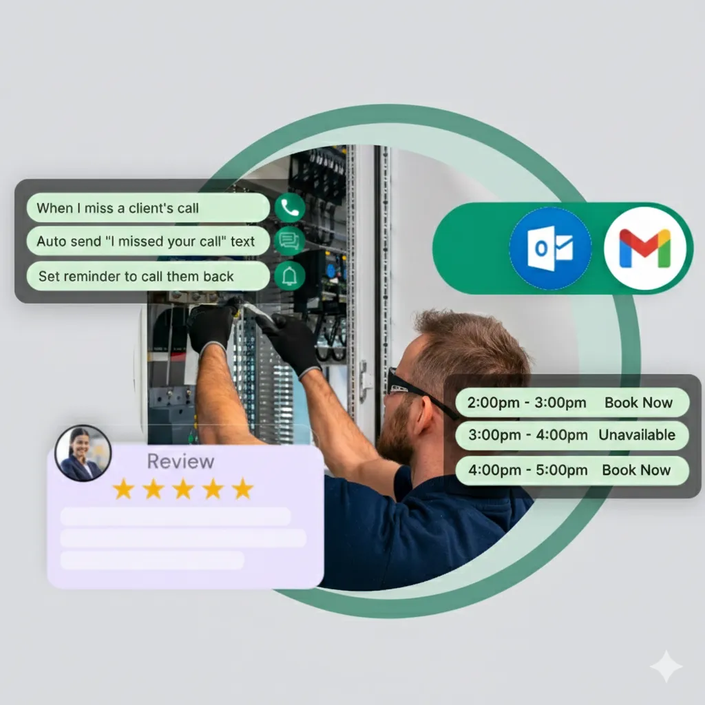 No. We integrate with whatever you're already using - whether that's pen and paper, QuickBooks, ServiceTitan, Jobber, or Housecall Pro. Our leads come to you via email, text, or direct CRM integration (your choice). If you want to level up your systems, we can help you implement scheduling and billing software that scales with your growth, but it's not required to start. Our goal is to fill your calendar with high-ticket work, not force you onto complicated platforms. You focus on the electrical work - we handle the lead flow.